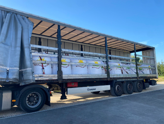 Die Beete sind inzwischen fast vollständig aufgebaut. Ein ganzer Sattelschlepper voll Sonnenerde wurde angeliefert und in die Beete eingebracht. Diese hochwertige Erde ist die Grundlage für gesunde Pflanzen und eine stabile Kultivierung. Der letzte Schritt: Die Beete vollständig befüllen – ein Arbeitseinsatz, der viele fleißige Hände braucht.